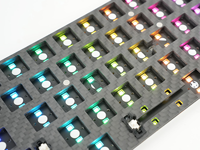 The combination of a carbon fiber switch plate and foam dampers provides a comfortable and clear keystroke feel.