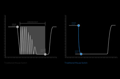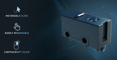 It eliminates the metal contacts that cause the bounce and delay found in conventional mechanical switches and uses a non-contact infrared method to detect clicks.