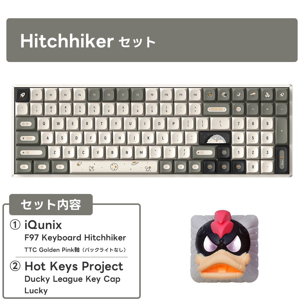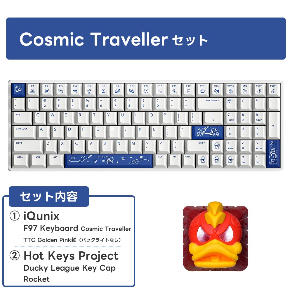 This month's set includes a full-size yet compact, high-quality wireless keyboard and a set of super cute keycaps featuring the Ducky logo!